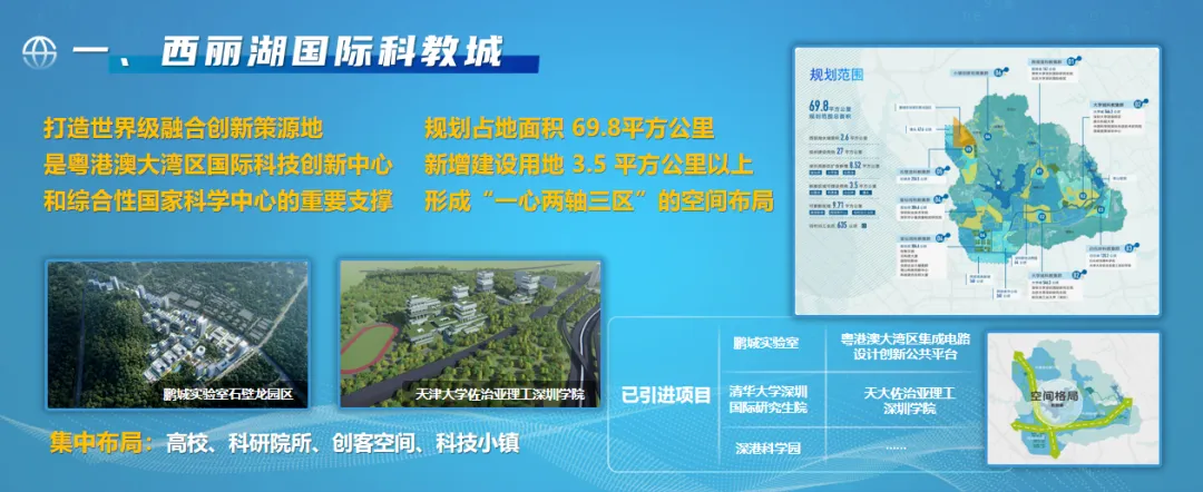 西丽湖国际科教城与留仙洞总部基地等产业空间,将重点聚焦于基础创新、先进制造和科技服务等领域,致力于成为创新的发源地和科技的领航者。
