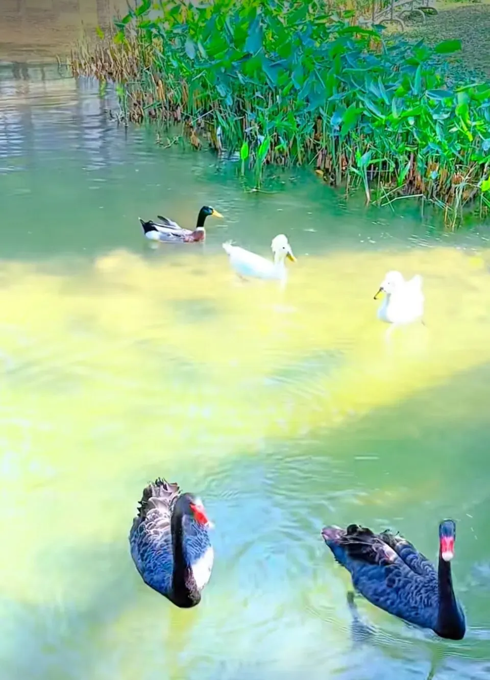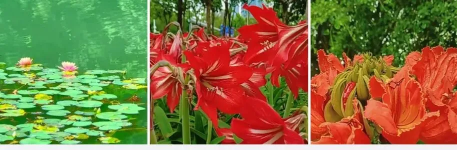 与睡莲的柔美、朱顶红的明艳相互映衬,让这片湖畔景致更富层次。