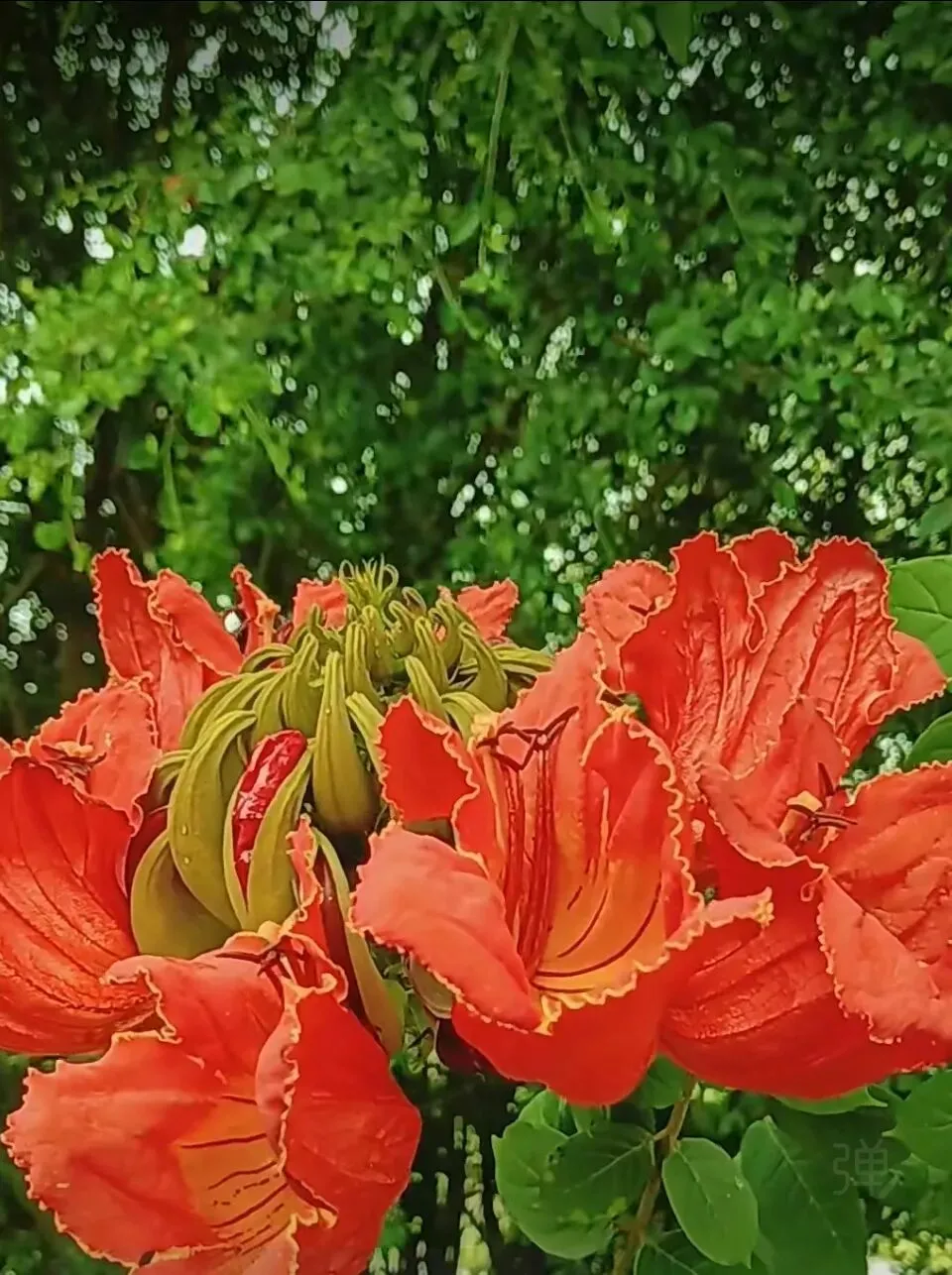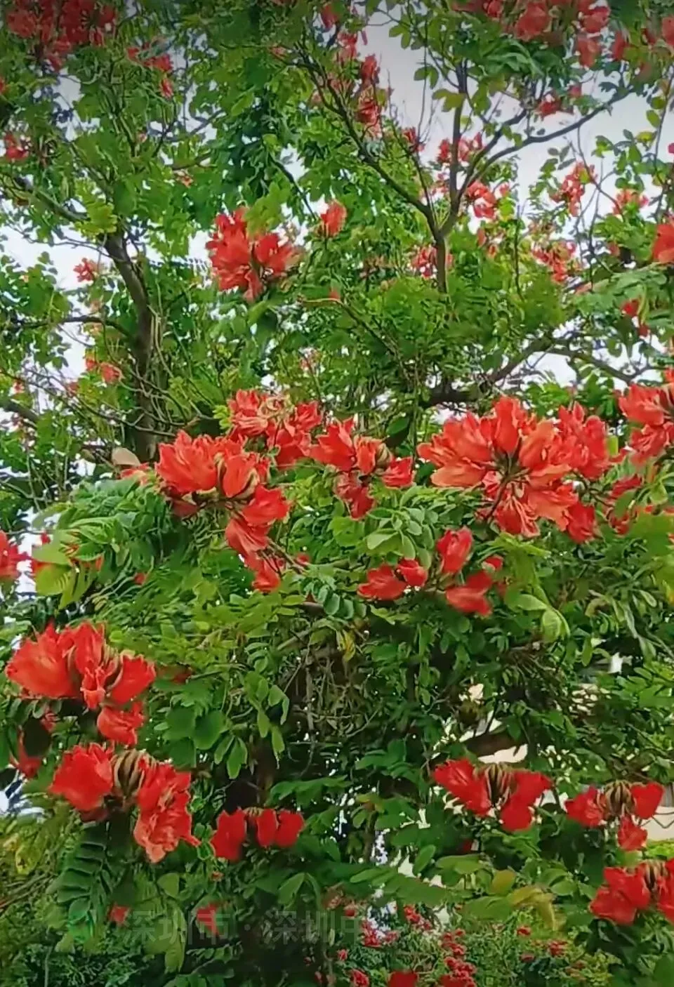 更添惊喜的是,E区湖畔还能邂逅盛开的火焰木。橙红花朵缀满枝头,如燃烧的火焰般热烈。