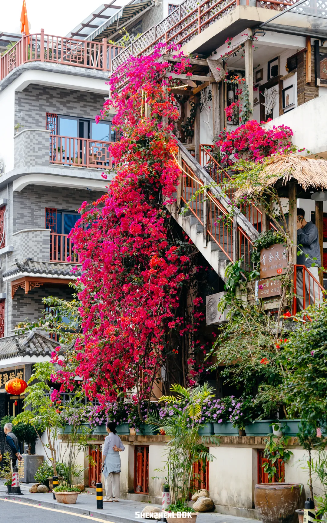 园博园的三角梅攀上黛瓦