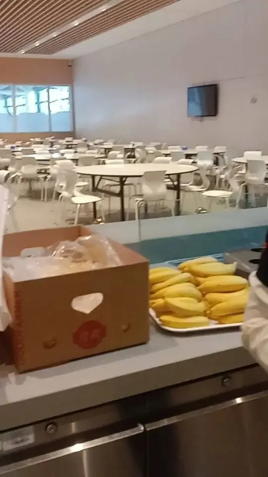 被招工的人带上餐厅,活挺简单,给今天参展的人提供固定水果,饮料,盒饭。