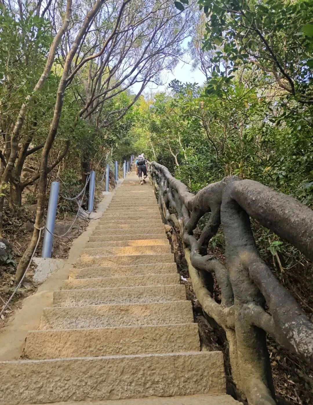 沿阶而上,野趣扑面而来。蜿蜒的石阶被绿意拥簇,仿木栏杆随山势起伏,行人的身影在树影间晃动,像是与山林玩着一场“追逐游戏”。