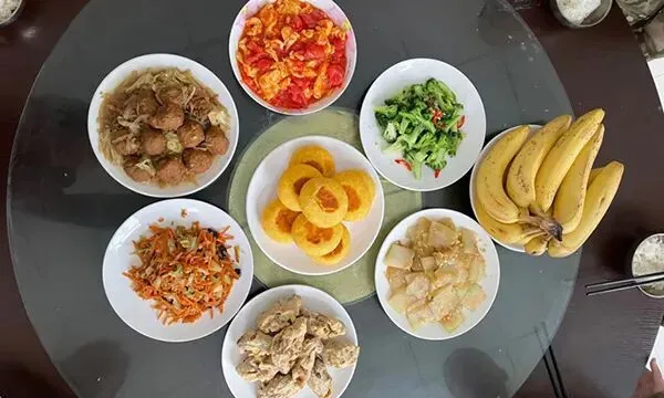 正餐:四菜(两荤两素)一汤+二种主食+水果