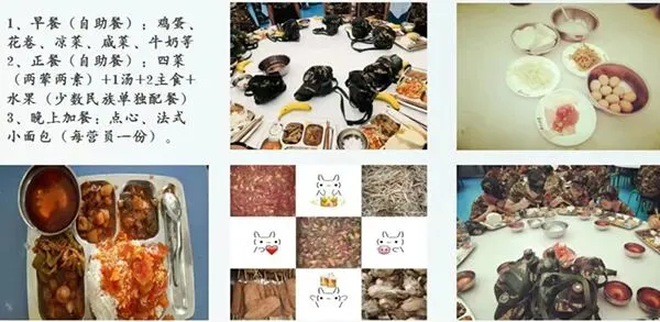 生活保障:营地依照部队战士用餐标准制定的菜谱供应饭菜,注重饮食科学,调剂品种花样。卫生监督员进行全程监督,每餐餐具进行高温消毒,饭菜留样检验;