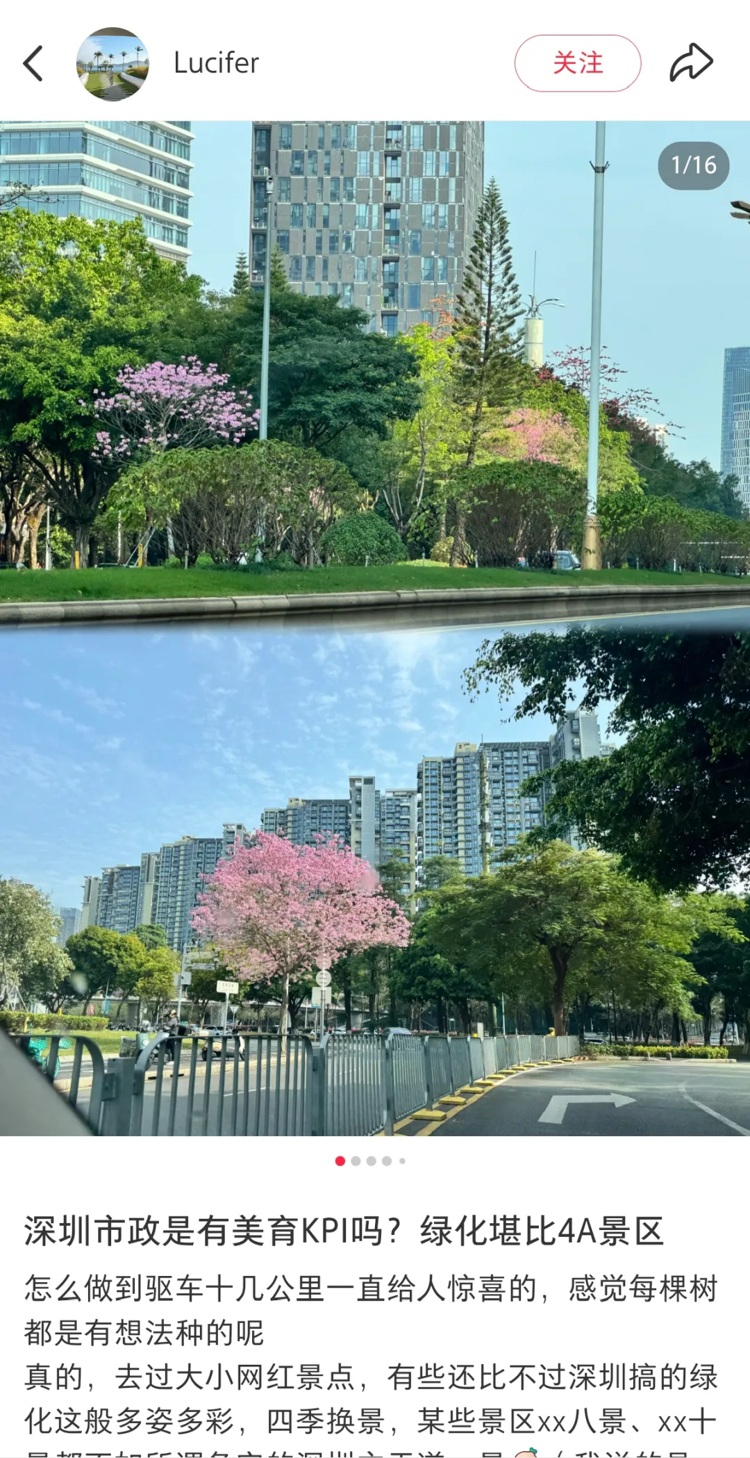 点开帖子的评论区,大家也满是共鸣,纷纷晒出自己拍到的深圳绿化街景。