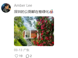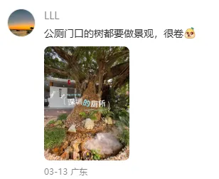 还有网友调侃,“深圳的公厕都在卷绿化”。