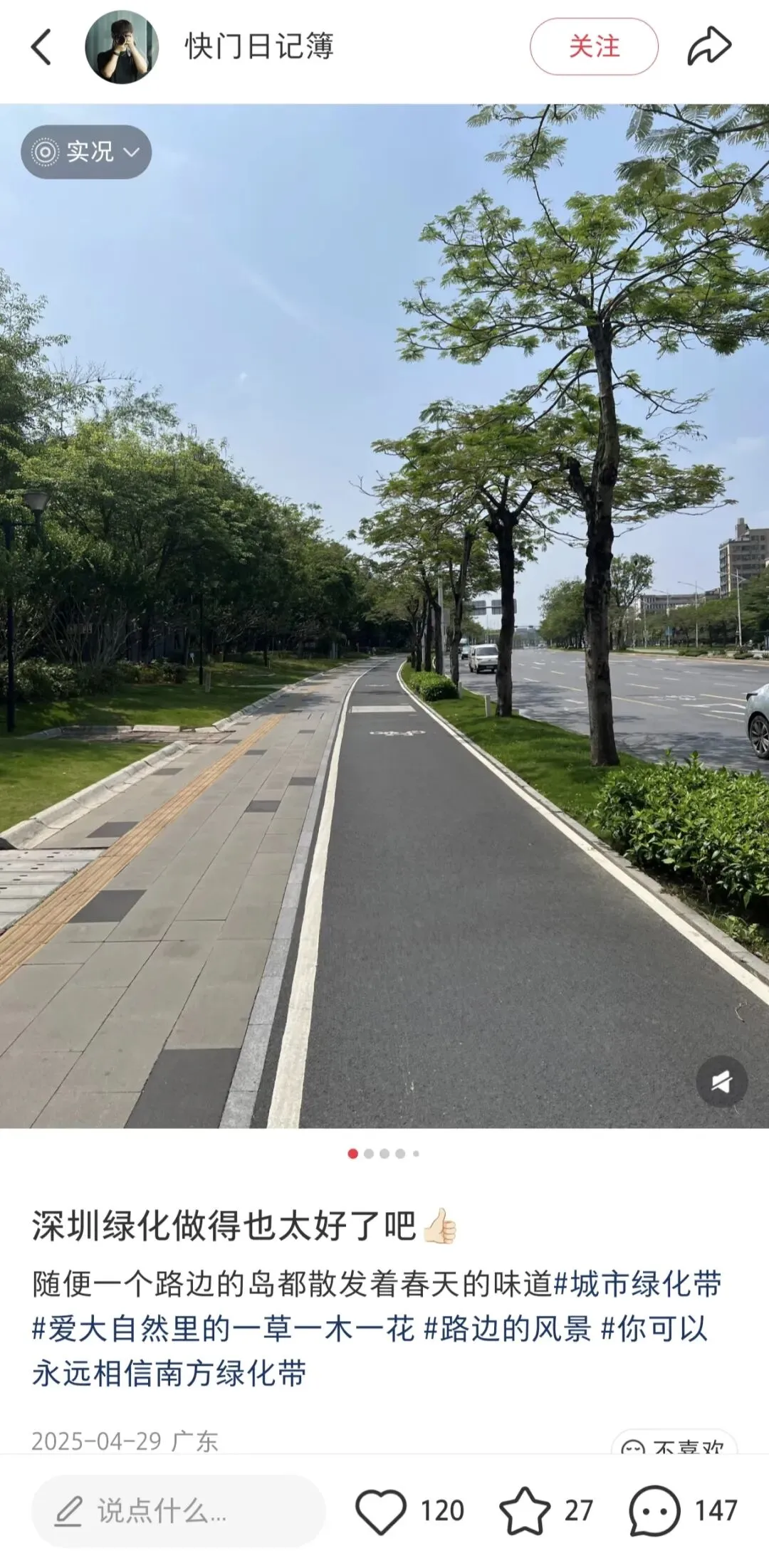 在社媒上,也频频刷到网友被深圳绿化惊艳到的帖子。