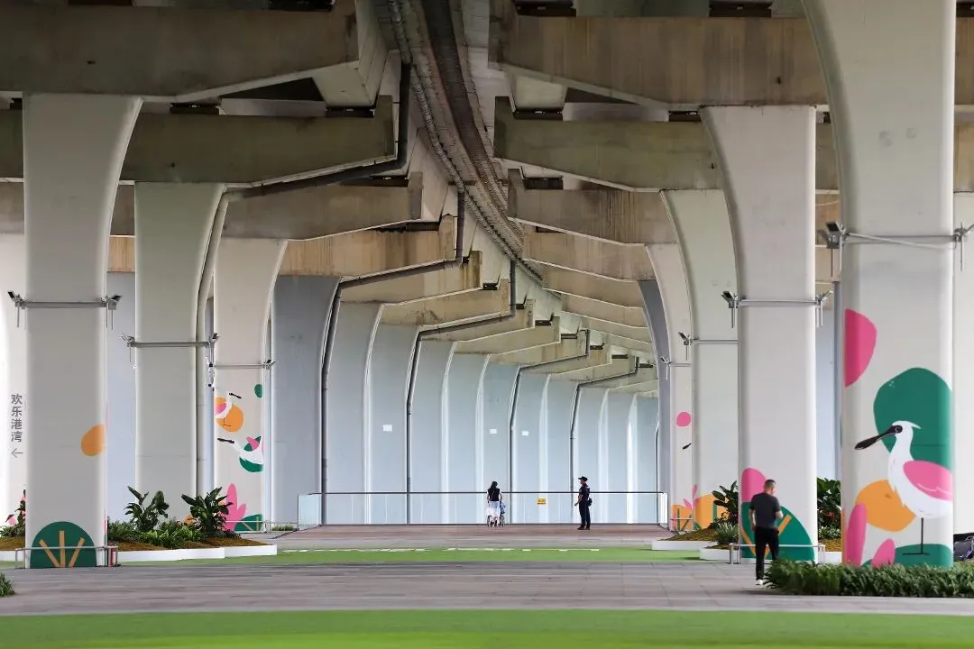 类似的例子比比皆是:宝安的山海连城骑行绿道,巧妙利用沿江高速桥底空间,建起一条“自带屋顶”的绿道,不惧风吹日晒,既丰富了城市景观,也让城市“边角料”焕发新生;罗湖区的行道树干上,画师依着树皮纹路绘出鹦鹉、蜥蜴,为公共空间注入新意,也自成一道风景;宝安区沙井街道北环路工业园的老旧围墙,被绘上蚝民出海、蚝壳筑屋的岭南风情画卷,告别杂乱,华丽变身为网红打卡地......