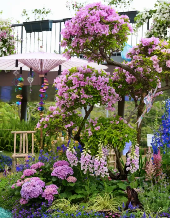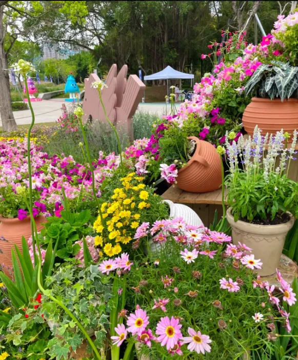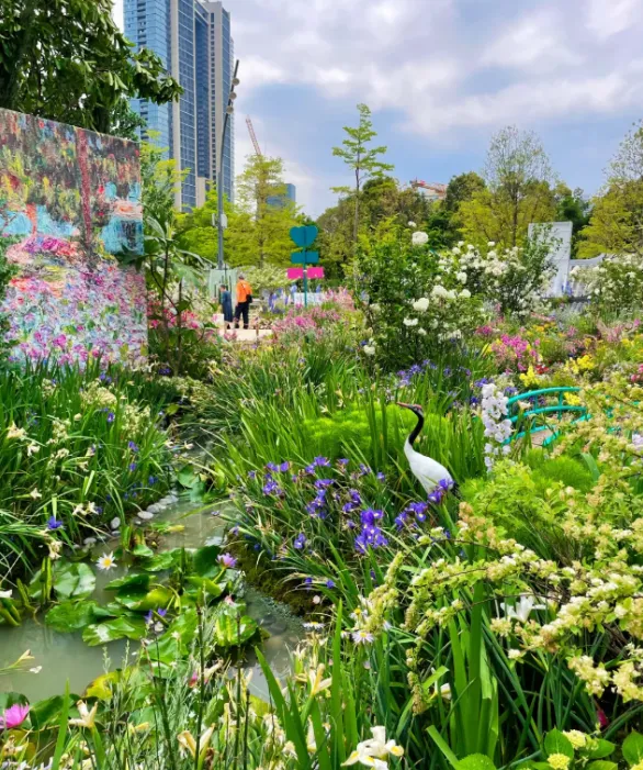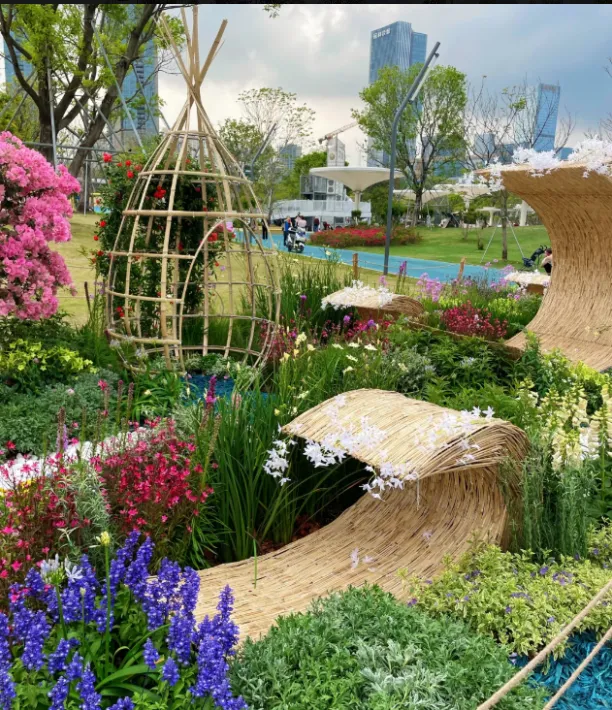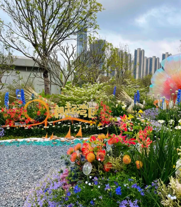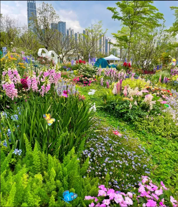 园区打造30 余座精品花园,分为大师园、湾区花园、城市花园、鲜花市集四大区域,一步一景、一园一韵。既有国际园艺的精巧设计,也有湾区人文的融合共生,山林绿意与鸢尾花海相映,城市建筑与自然生态无缝衔接,完美诠释 “优雅开放、融合共生” 的内核。