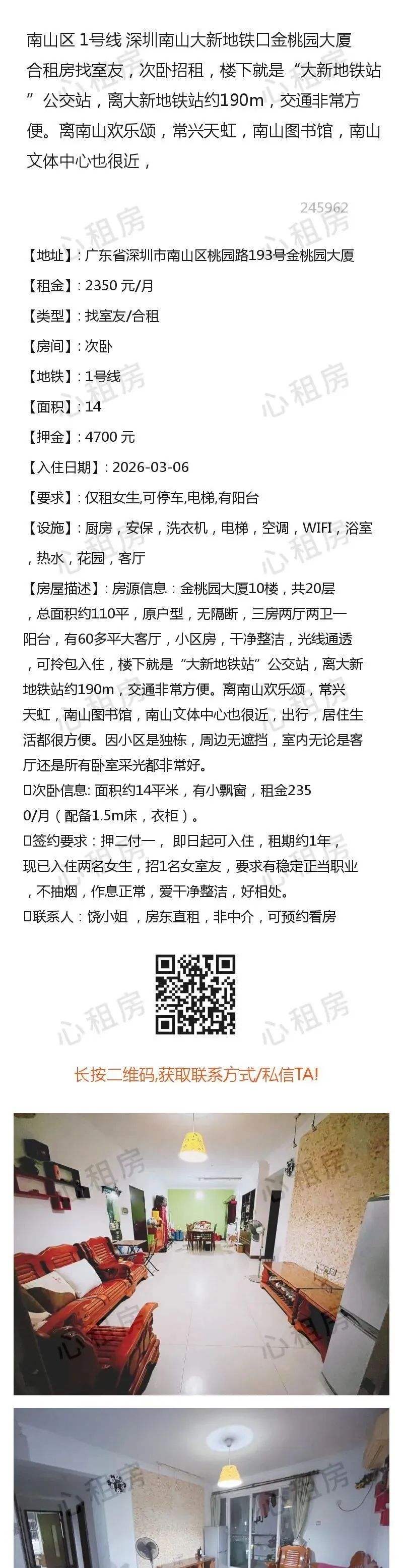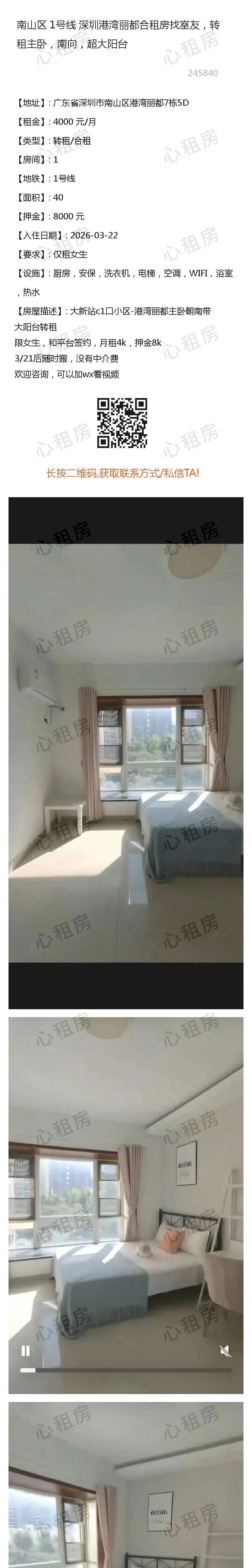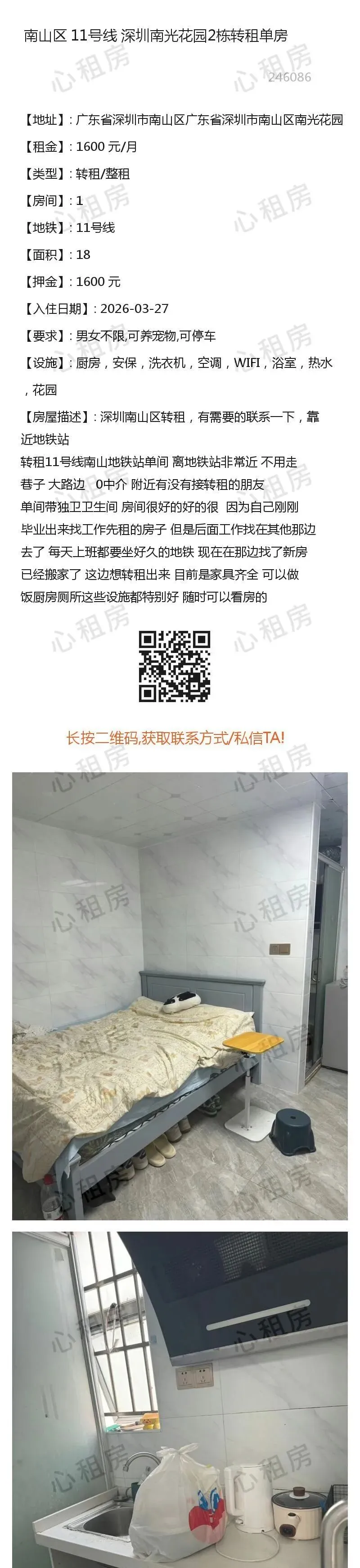 深圳租房【南山4则】房源①:11号线深圳南山南光花园2栋转租单房1600元/月;房源②:.........