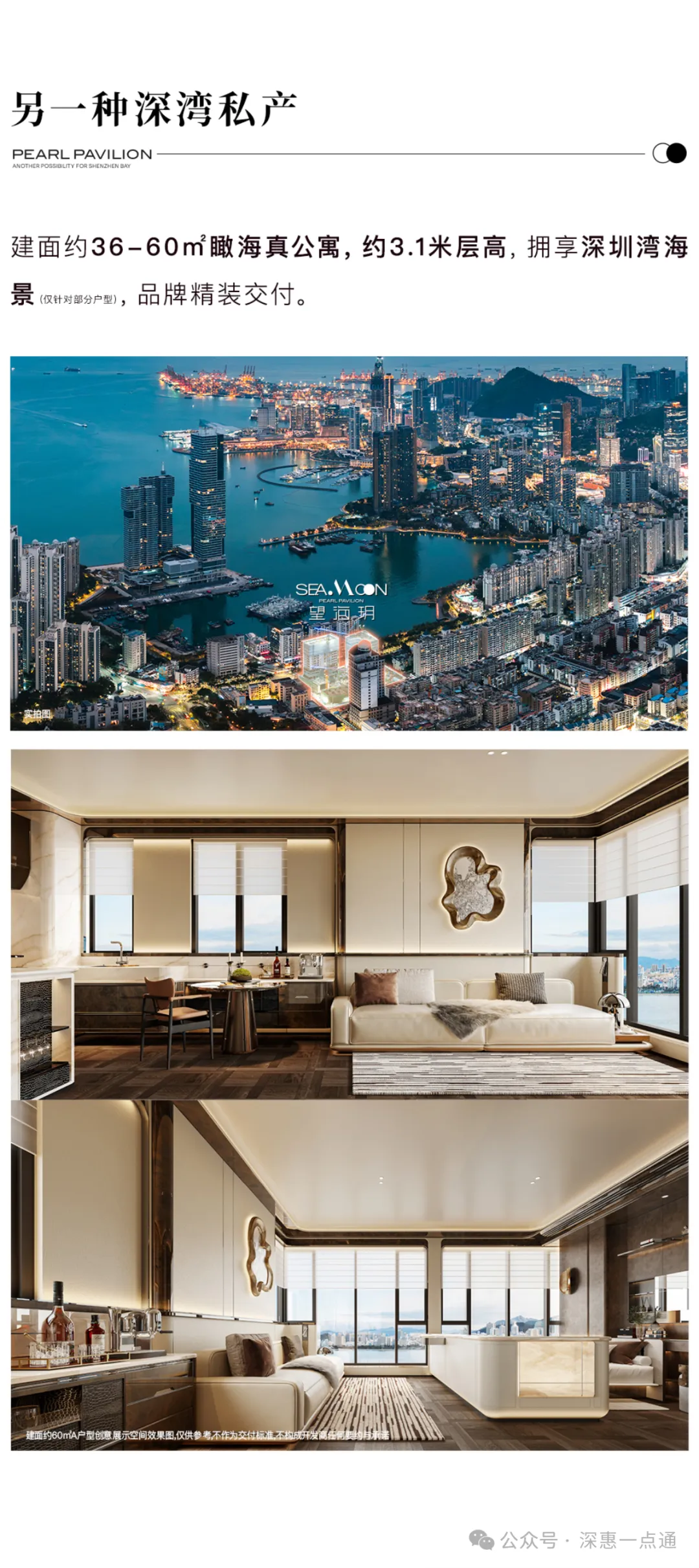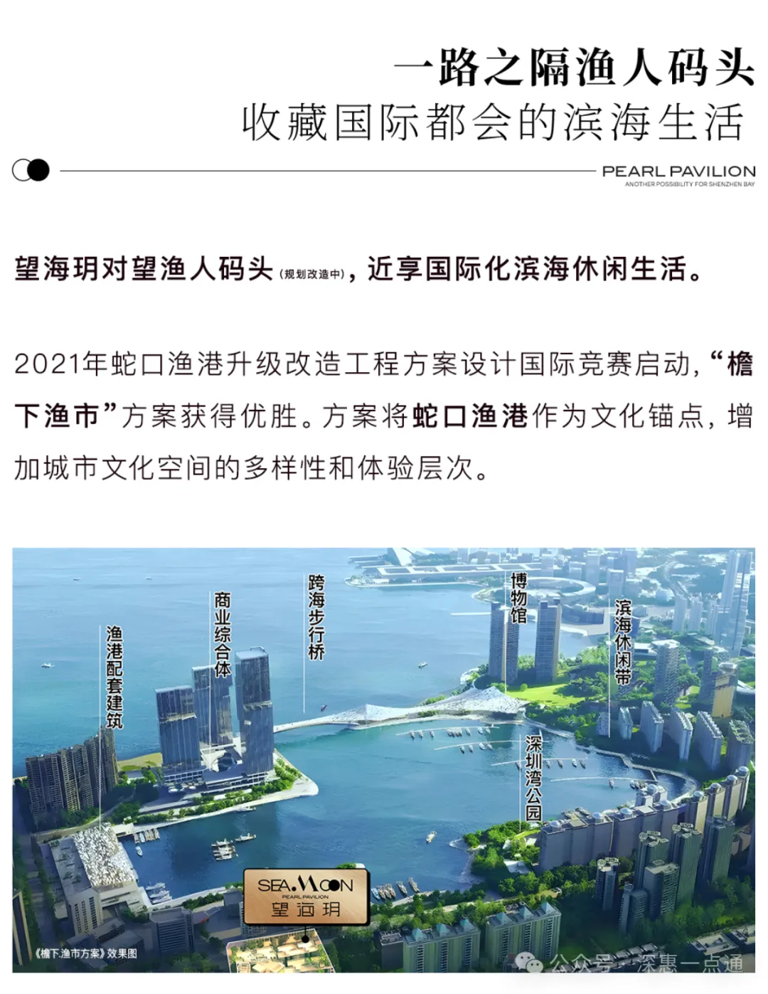• 地段稀缺:处于南山蛇口核心区,新房长期断供,与中信东角头、半岛城邦五期并称 “蛇口三大新盘”,稀缺性高。紧邻半岛城邦等豪宅区,能共享区域高端配套1。 • 交通便利:距离地铁 2/8 号线东角头站仅 200 米,2 站可到海上世界。未来 13 号线开通后,将直达深圳湾口岸,通勤效率高1。 • 配套成熟:教育方面,划片育才太子湾学校,虽非顶尖但集团化办学有一定保障。商业上,自带 1 万㎡商业,周边海上世界、K11 等高端商圈覆盖。生态环境优越,滨海栈道、女娲公园、歌剧院(在建)等步行可达1。 • 户型门槛友好:主力为 67-125㎡刚需改善户型,均价约 11 万 /㎡,总价 650 万起,是蛇口稀缺小户型新盘,对比周边二手房性价比突出,适合刚需上车和预算有限的改善型购房者1。 • 开发商实力强:由招商蛇口和渔二实业开发,国企背书,在产品质量和开发经验上有一定优势,能保障项目的顺利开发和品质3。 • 景观潜力大:部分中高层户型可享 “二线海景”,且南侧蛇口渔港即将升级,未来景观有望进一步优化。 |