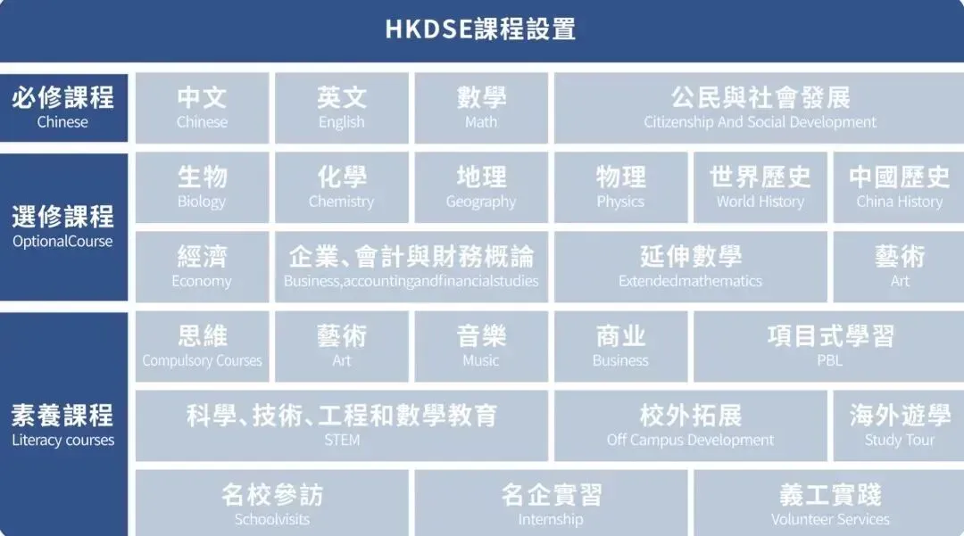 以DSE课程体系为基础,以培优课程为辅助,融入了探究型学习的元素和爱丁堡公爵奖评估体系,积极构建个性化、国际化、多元化的新时代人才培养校本课程。