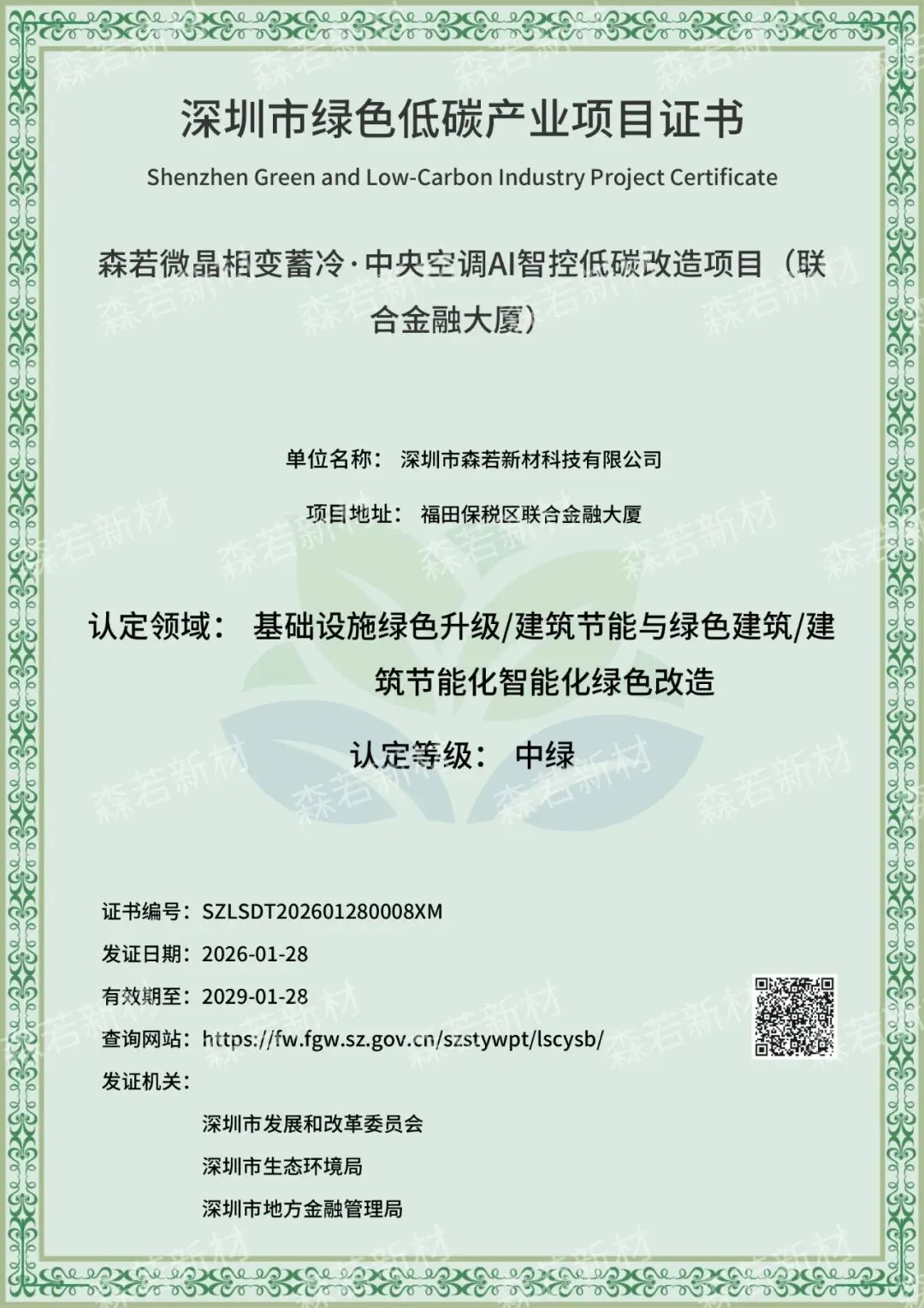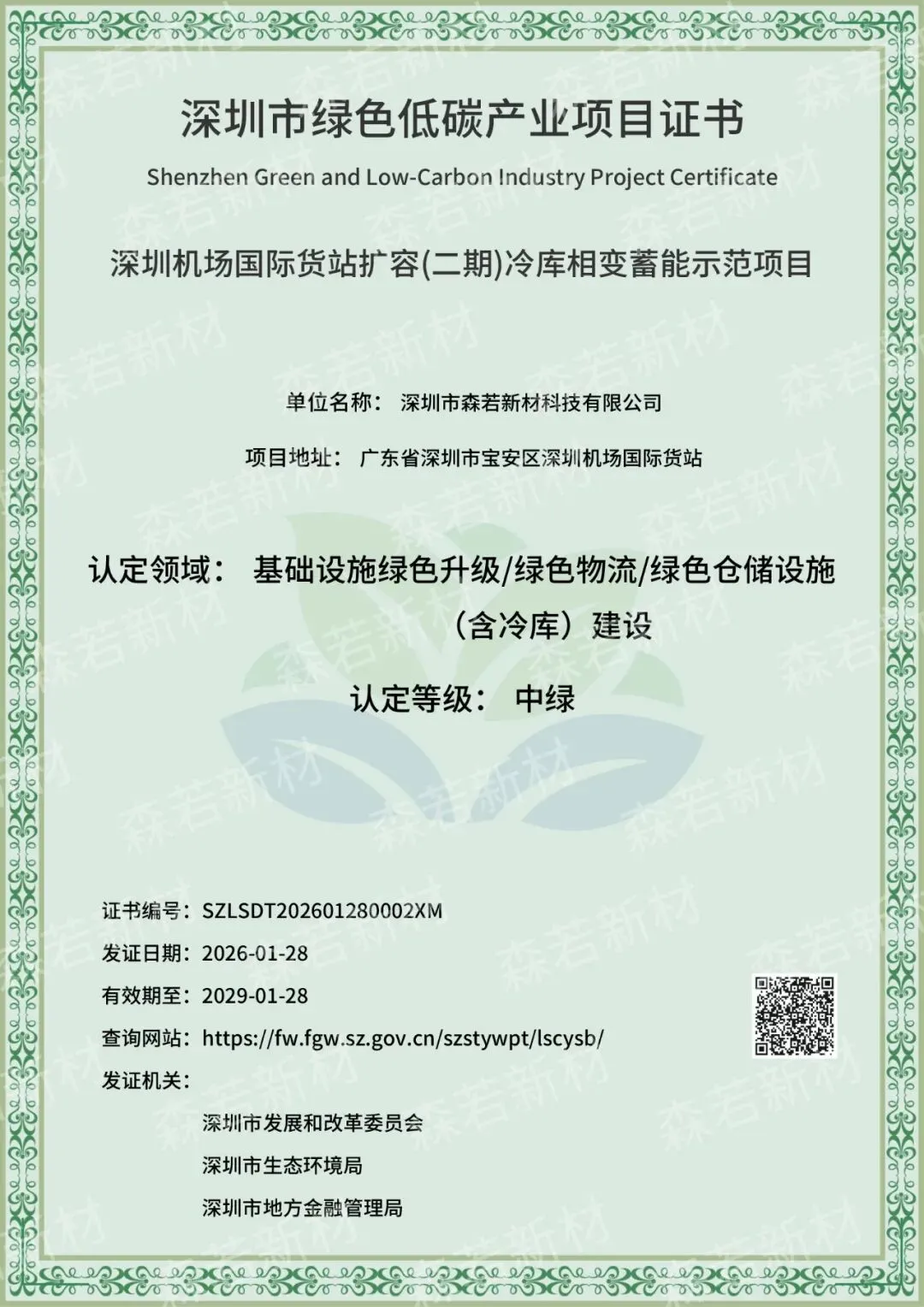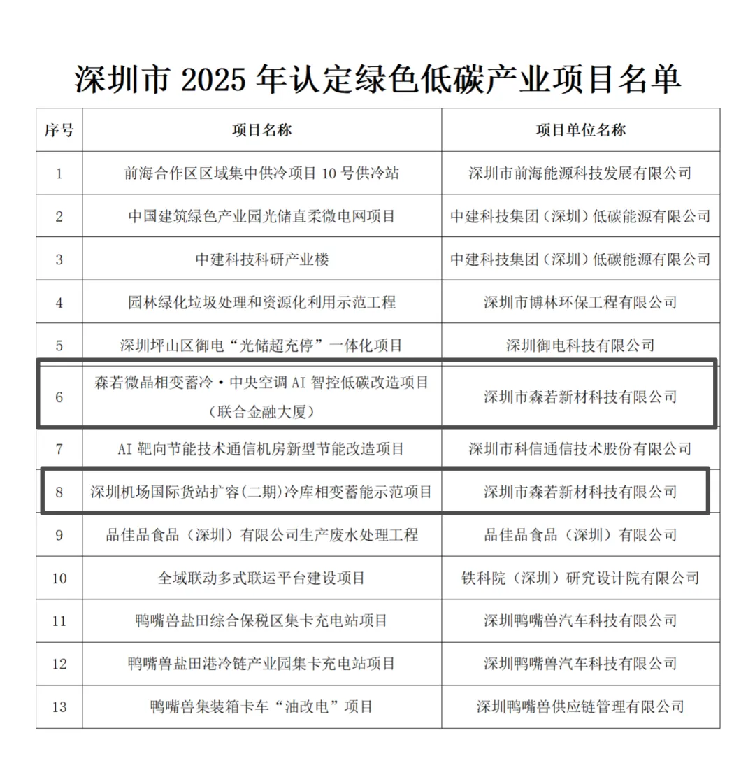 深圳市三部门联合公布2025年绿色低碳产业项目名单,森若两项目入选