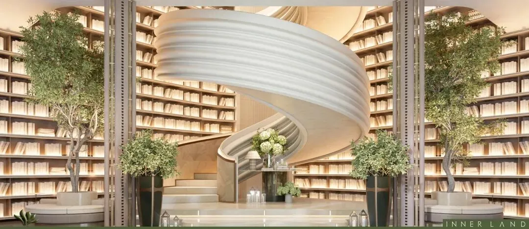 汲取白马庄园旋转楼梯灵感,定制局部挑高超9m万卷书屋,打造区域首个社区图书馆,上千本书籍静待翻阅。