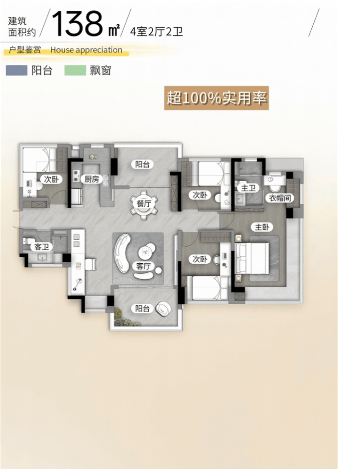 全系超100%实用率,全屋飘窗高赠送——这是新国标赋予的空间魔法,也是龙湖对居住尺度的极致追求。