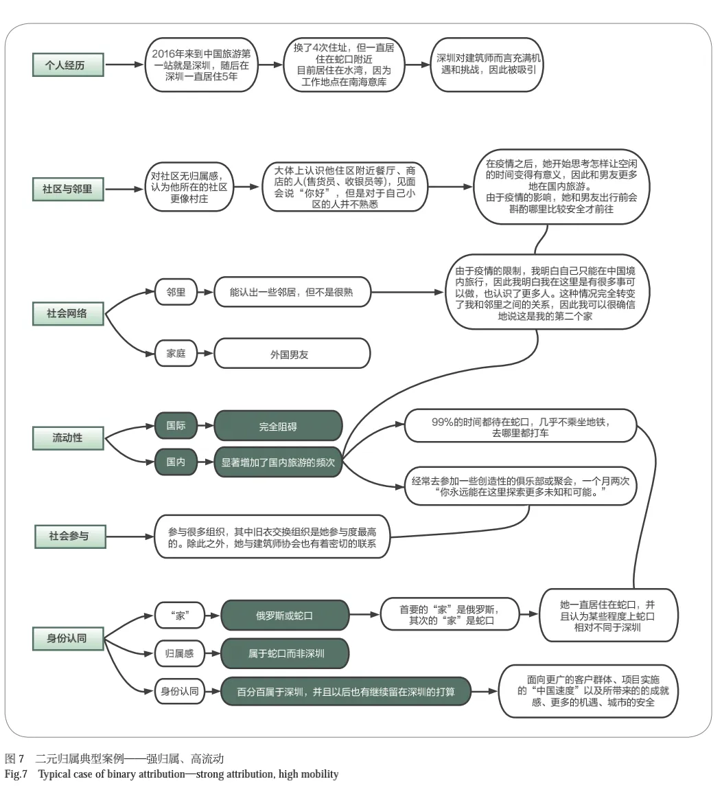 在地流动性包括国内流动和市域流动。访谈中大多数人的国内流动出行受到限制,但市域流动没有受到影响,甚至有所增加。经分析,这部分人群的地方归属与地方认同相较疫情前有显著提升,因此初步论证在地流动性的增加有助于提升在深圳外籍人士的地方感,疫情后对于外籍人士国内或在地的流动性激励将有助于丰富多元文化的交融与地方感的深化。
