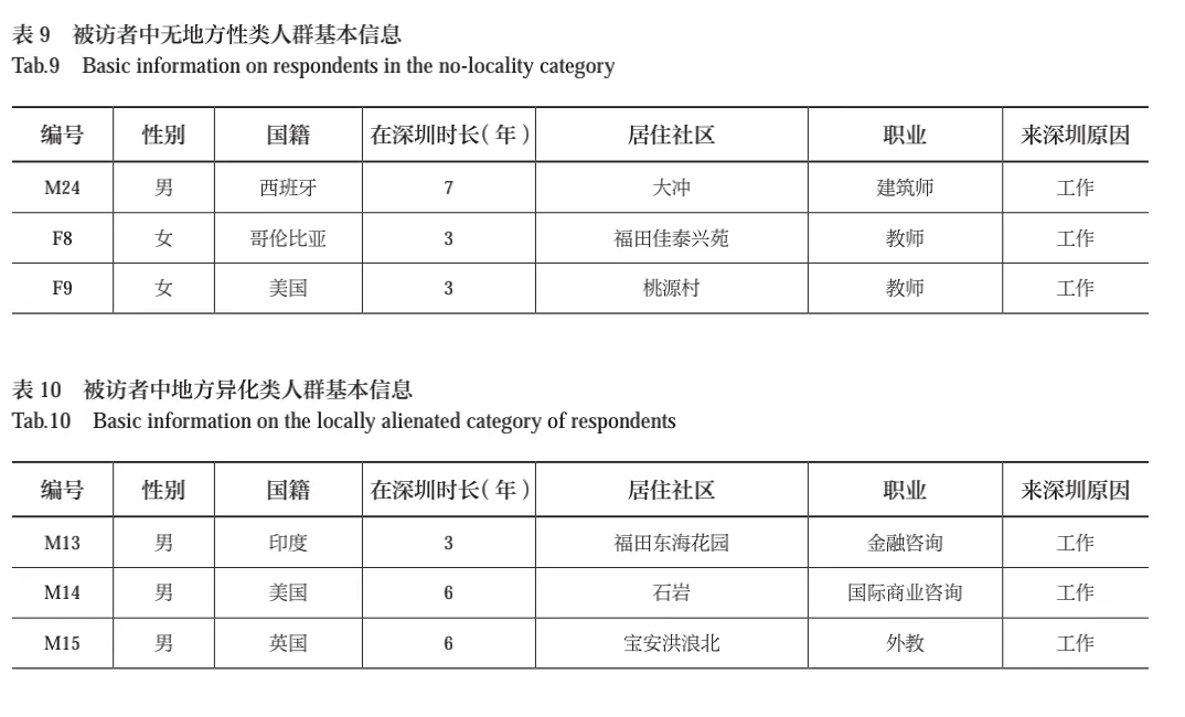本次研究采取志愿招募的方式收集了共40个样本数据,采用半结构化深度访谈与实地观察等相结合的质性研究方法,从2021年5月到2021年11月历时半年,对2019年前到中国并有长期在深圳的居住史且目前仍居住在深圳的外籍人士,调查其新冠疫情前后不同尺度流动性变化对其地方感的影响。研究划分社区归属、地方认同、地方归属与地方忠诚四个研究层级,围绕居住历史、流动性、社区营造、地方感等展开深度访谈。平均访谈时长为50~110分钟,访谈材料整理统计共12万字。不同于以往传统定量分析研究从统计学的角度进行地方感的分类和验证,此类方法充分考虑个体的差异和特殊性,可以深度挖掘被访者想法。