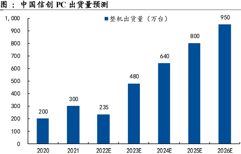 随着,中国信创从党政向关键行业推进,中国信创PC出货量持续增长,据赛迪网预测,预计2026年我国信创PC市场整机出货量增至950万台。