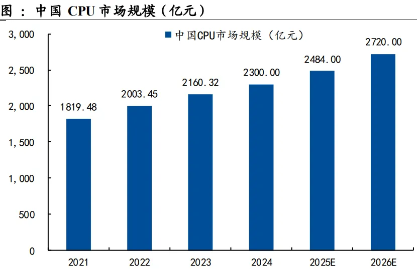 随着我国CPU市场规模增长,以及海外巨头涨价下,公司有望率先受益,据亿欧智库报告,2026年我国CPU市场规模将增至2720亿元。