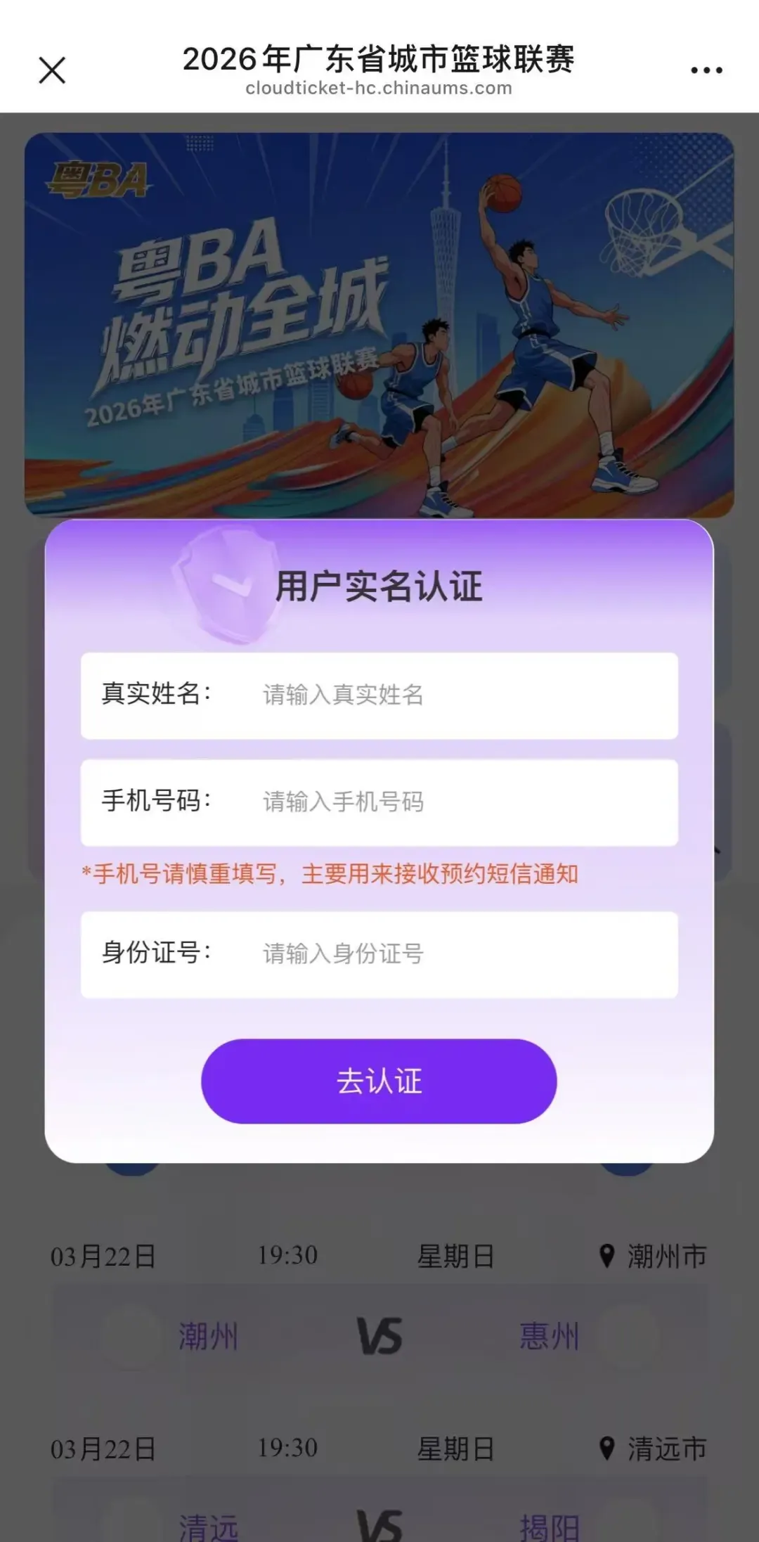 关注“广东篮球-粤BA”微信公众号,点击主页“粤BA购票”专栏。