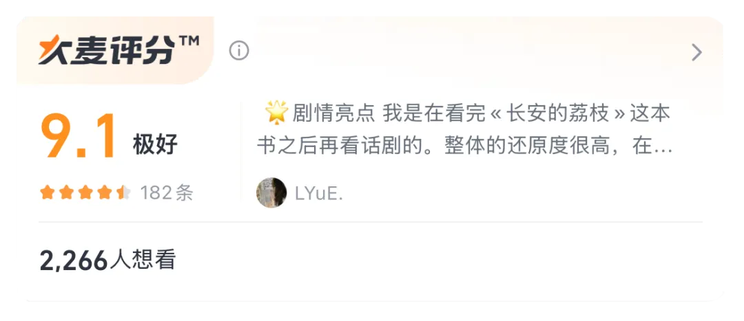 马伯庸笔下的高分神作《长安的荔枝》,重磅IP改编话剧同样也是口碑佳作,豆瓣8.1分+大麦9.1分,一场口碑飓风席卷全网!