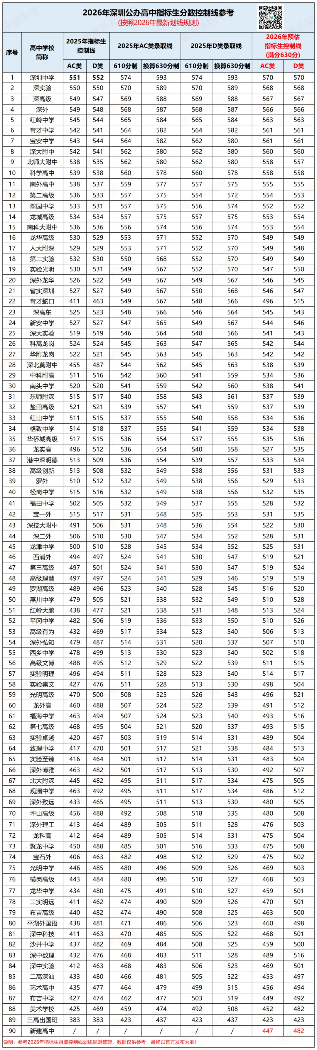 对于近三年新建的公办普通高中,若某一年份没有本校相应招生类别的录取分数线,则采用该年份全市公办普通高中相应招生类别第一批录取的最低分数线(同样按比例换算为满分630分对应的分数),代入计算。