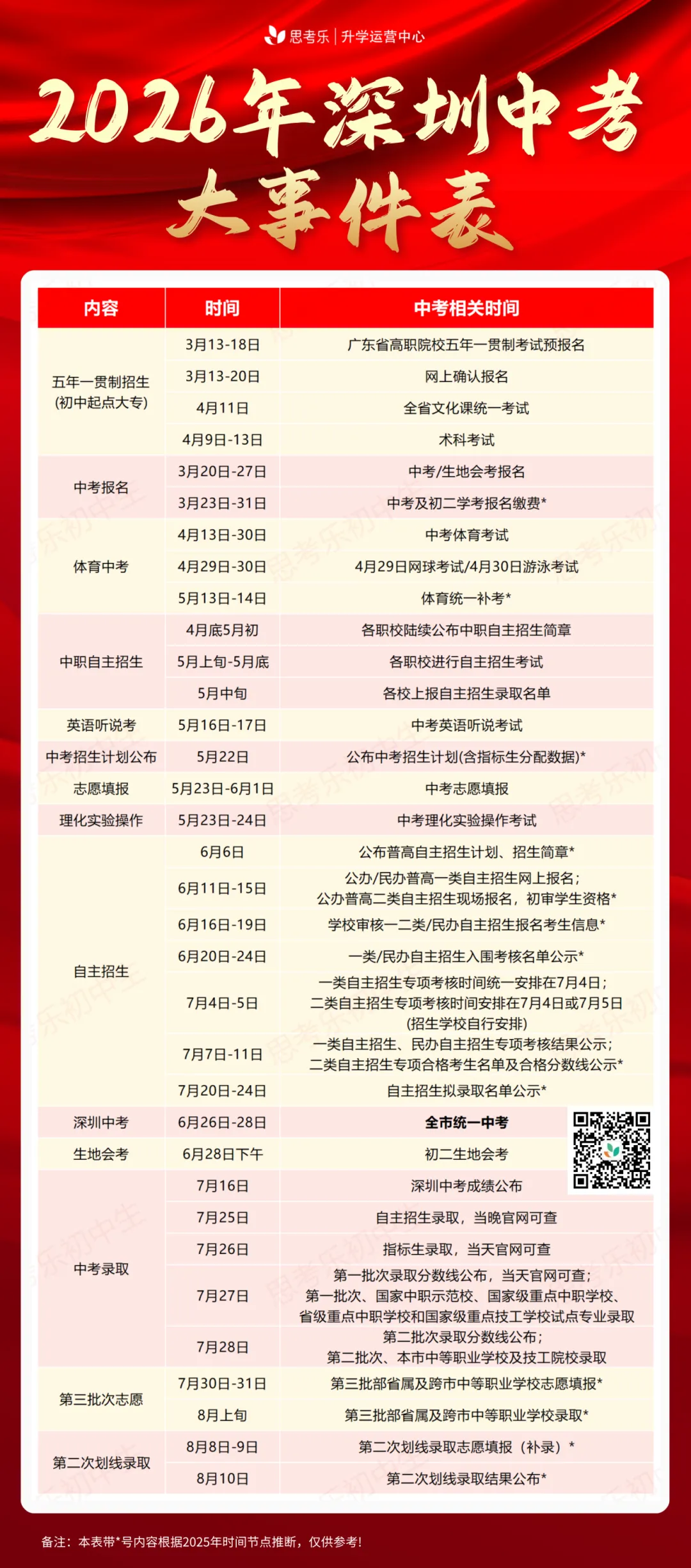 2026年中考志愿填报时间为5月23日-6月1日,相较于2025年整体缩短3天,时间更为紧张,需提前做好准备。