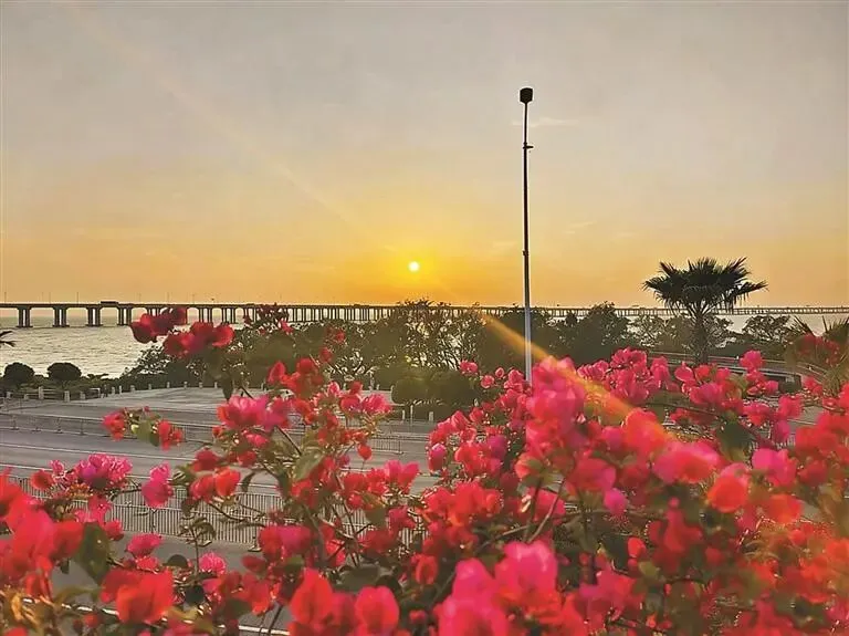 在这里,可以在海边漫步,远眺深中通道,同时还有百亩红树林,3.5公里长海岸线滨海步道,观景一绝。特别是太阳快落山的时候,站在沿海观景台或栈道上,可以同时捕捉日落、飞机和海景。