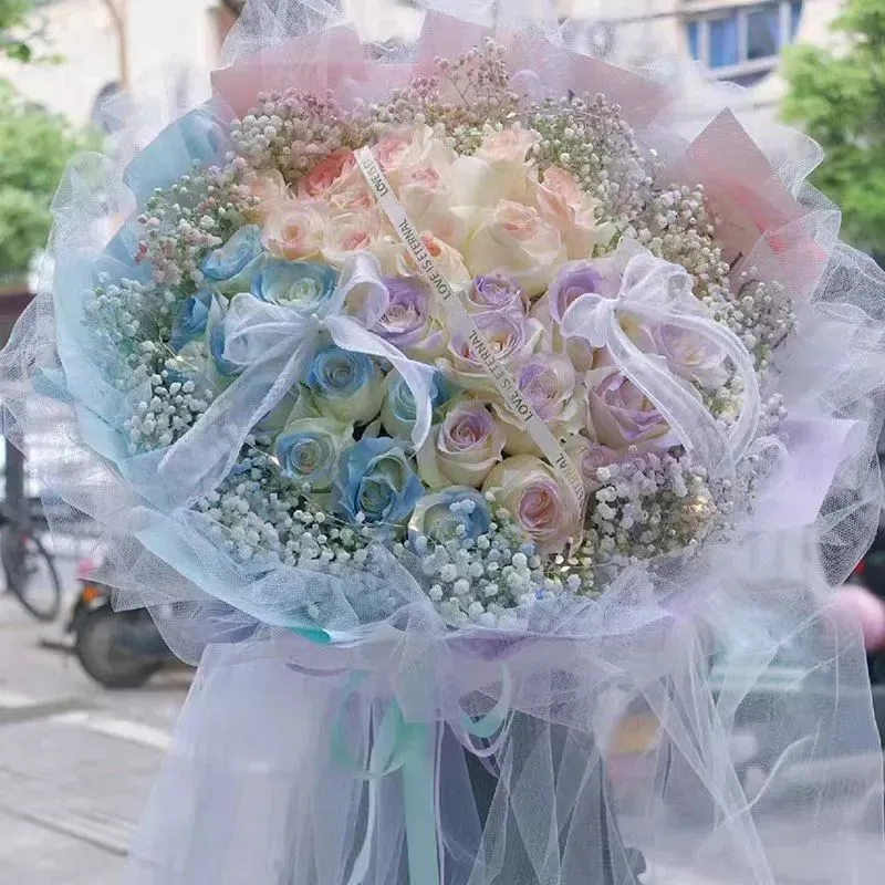 尚花客的包装设计也独具匠心。根据花卉的种类和寓意,设计师们会选择不同的包装纸、丝带和装饰物。对于蓝色妖姬玫瑰,可能会采用深蓝色的包装纸,搭配银色的丝带,凸显其神秘高贵;对于满天星,可能会用透明的玻璃纸包裹,再系上淡粉色的丝带,展现其璀璨浪漫。