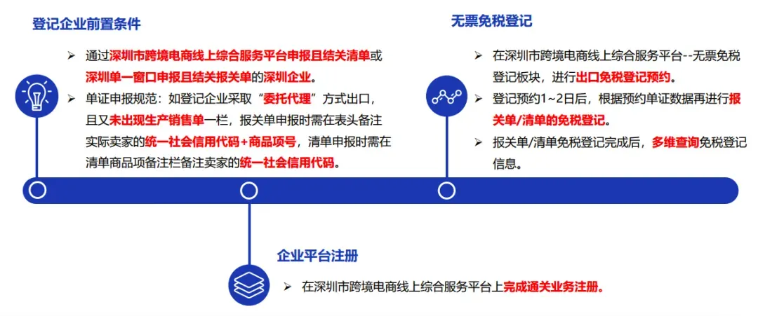 针对跨境卖家从中小工厂、个体户采购,难以获取进项发票的痛点,深圳优化“无票免税”政策,明确要求:注册于深圳的跨境电商企业,通过综服平台或深圳单一窗口以9610零售出口模式报关,即便无法提供进货发票,出口货物也可免征增值税、消费税。