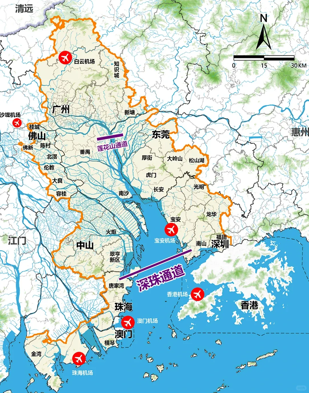 这样香港能避【深圳】锋芒,通过大桥渗透进珠江西岸,扩充自己的机场、港口腹地。