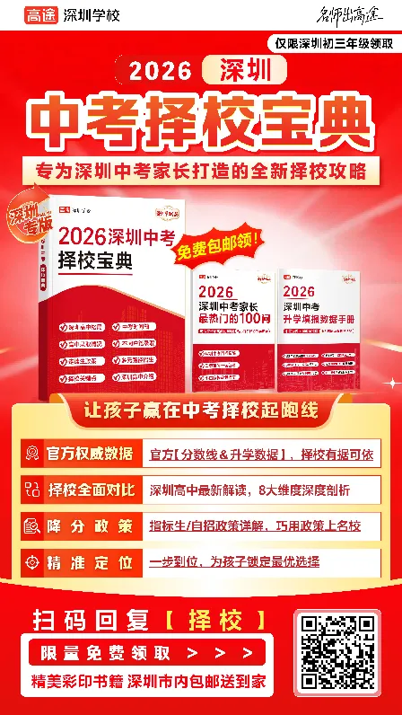 《2026深圳中考择校宝典》+《2026深圳中考升学填报数据手册》+《2026深圳中考家长最热门的100问》重磅发布,即可开启领取。