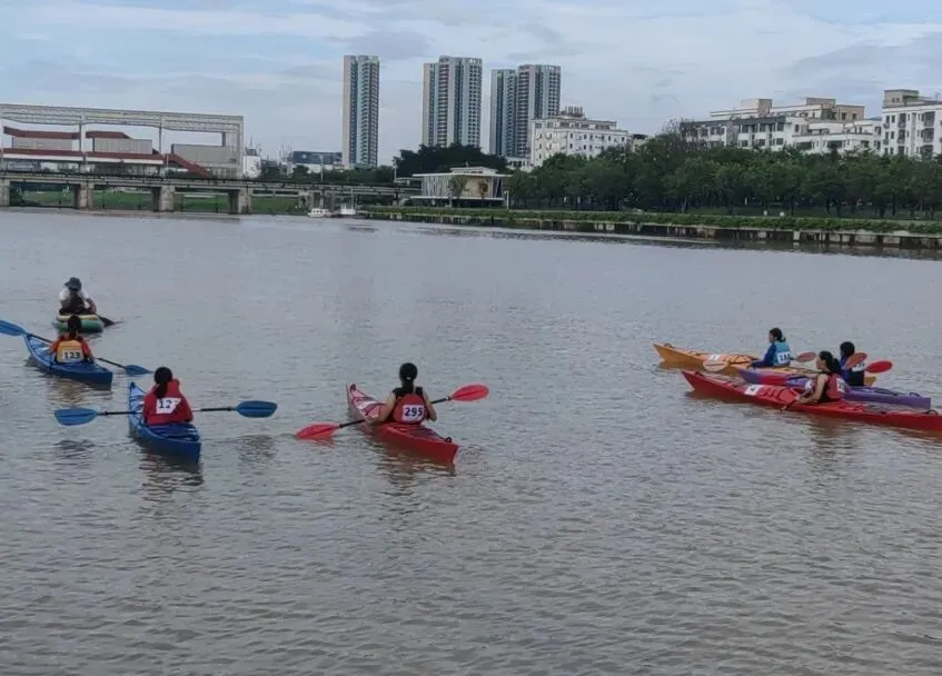每天放学后,茅洲河面上总能看到燕山学子的身影。他们身着专业装备,在夕阳的映照下练习划桨、转向与平衡,成为河畔一道风景线。皮划艇训练不仅锤炼了学生的体能,更培养了他们的专注力与协作力——不少性格内向的孩子,在双人艇的默契配合中慢慢学会了沟通与包容,变得愈发坚韧乐观。在宝安区“体彩杯”锦标赛上,学校皮划艇代表队斩获金牌,更为学校的体教融合注入新的动能。