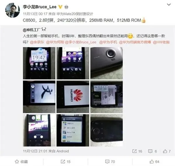 普遍认为2009年在海外推出的U8220是华为第一部智能手机。