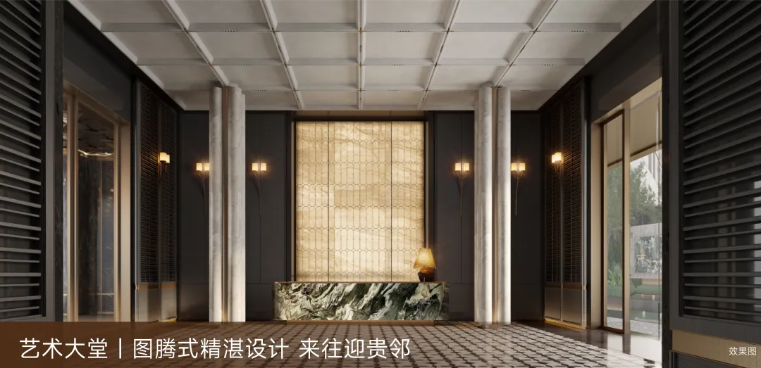 源赏艺术共鸣——归心礼序:打造酒店式归家秩序,在归家路上植入南洋特色元素,将仪式感与艺术性完美交融,身份气度不彰自显。