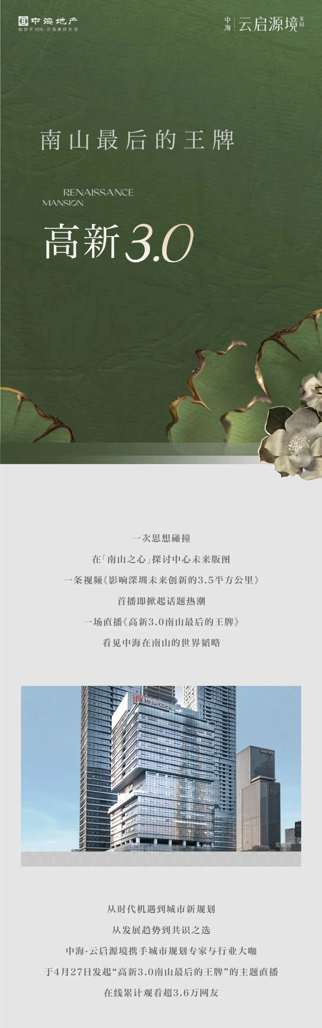 ·中海地产:深耕深圳 37 载,秉持【择址中心、定鼎中心】品牌观,中海地产品牌价值蝉联行业第一,权益金额2857.5亿元(截至2024年12月31日)。中海地产始终遵循城市发展脉络,匠心打造每一座城心地标。