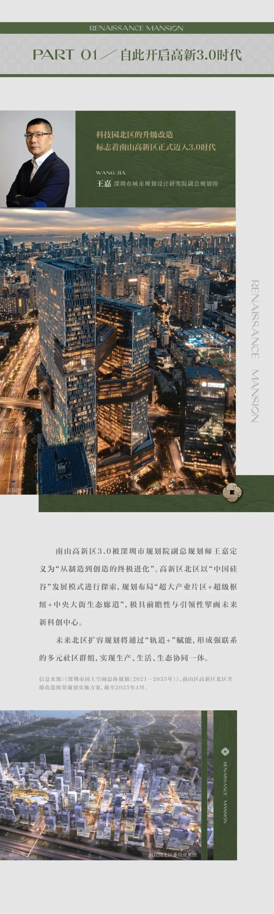 深圳南山,中国 GDP 强区,上市企业密度全国第一,企业总数超 40 万家,规划2035将建成具有全球影响力的典范区。项目所在科技园芯,横向连接前海合作区与深超总,纵轴连接留仙洞总部基地与后海总部基地,形成一核四区的发展骨架,驱动城市核心发展,吸引大量产业、人才聚集。