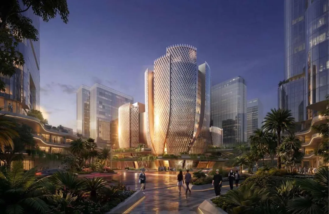 从目前披露的设计方案来看,园区由四座塔楼构成,通过三维高空廊桥串联,形成环抱中央绿洲的结构,营造出融合自然与休闲的连续公共空间。这种“城市客厅”式的设计,使美术馆不再是孤立存在,而成为整体生活方式的一部分,也进一步模糊了文化消费与日常消费之间的边界。