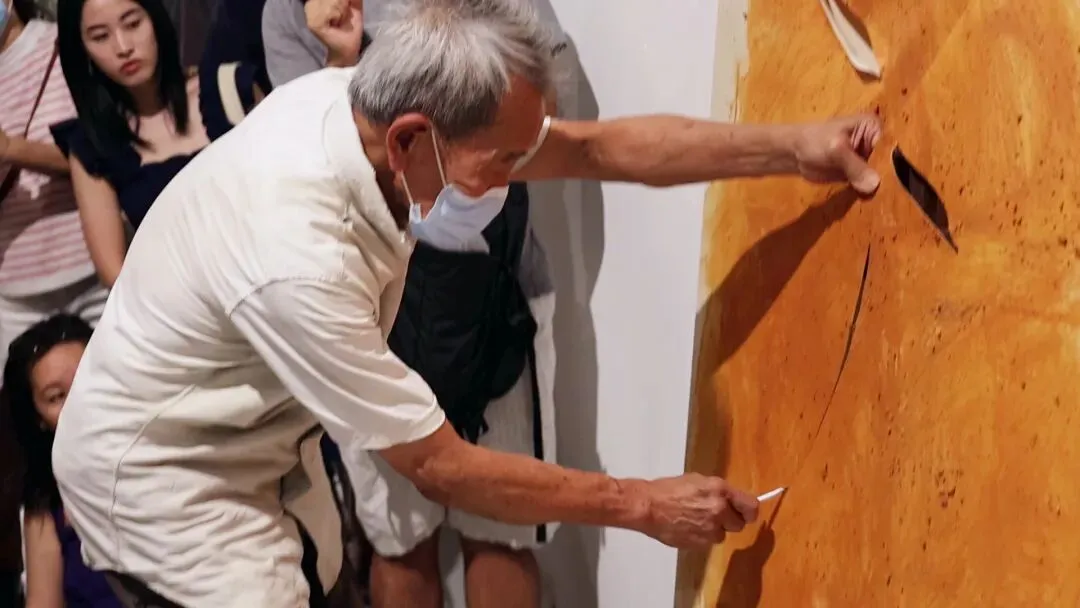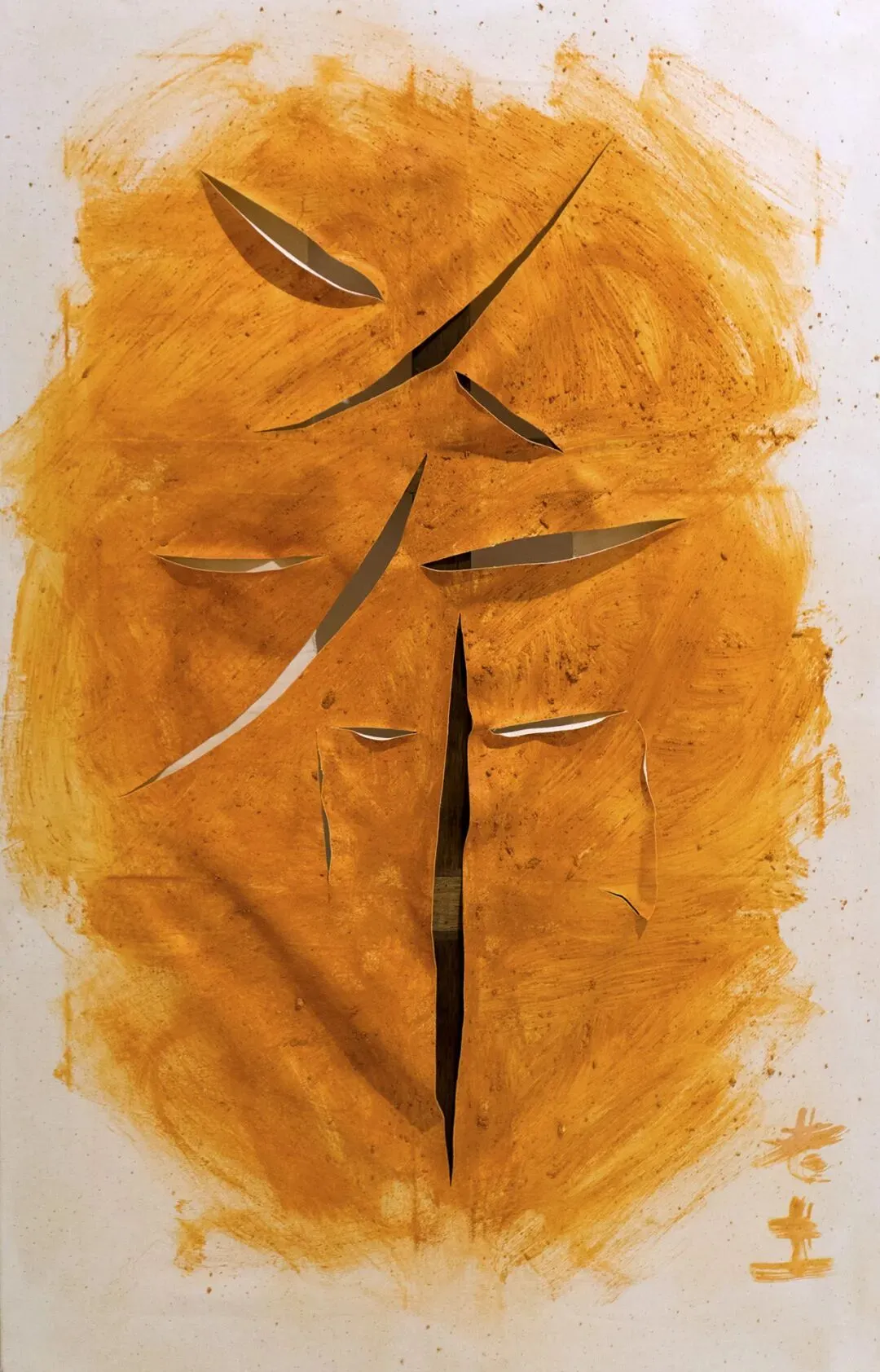 2023,装置,泥浆和丙烯打底的画布上割痕,行为物件,157.5(H)x105x6cm