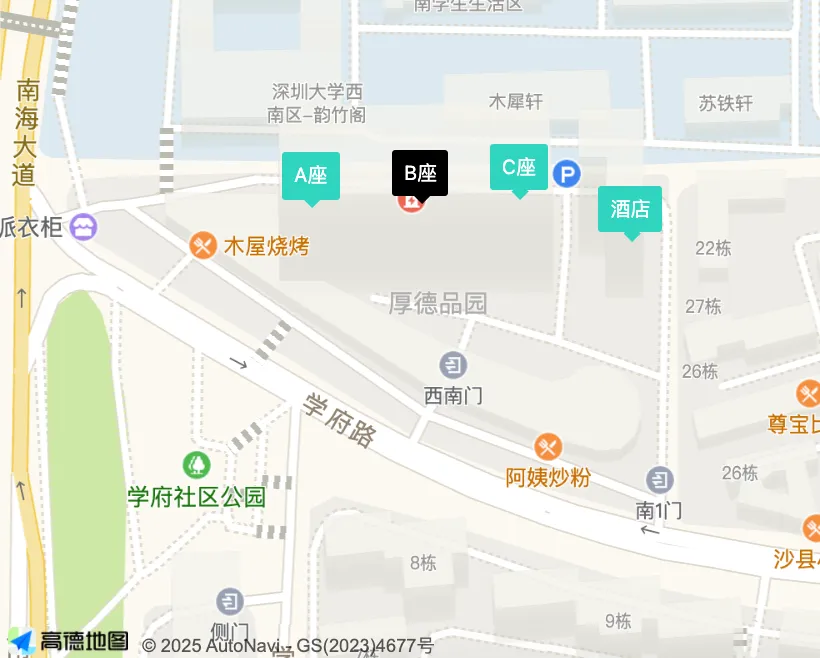 生活配套成熟,南山海岸城、深圳大学、文心公园、京东购物、学府社区公园、南山书城、南山人民医院等