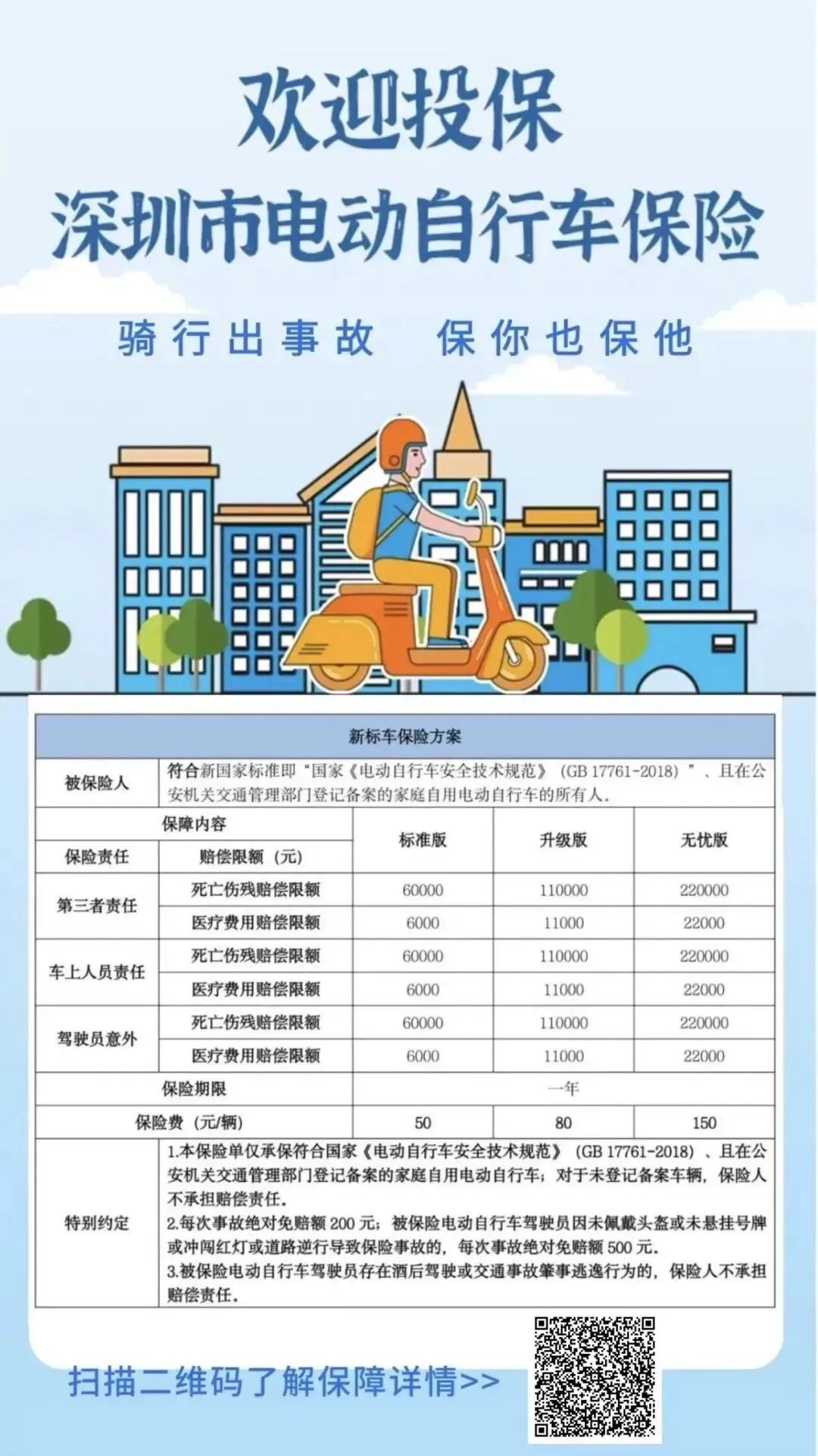 电动自行车因比打车省钱,比公交方便深受人们欢迎,但是骑行之路意外难以避免,因此我们不仅要准备好安全装备,还要准备保险这个无形的防护,让出行之路更安全。