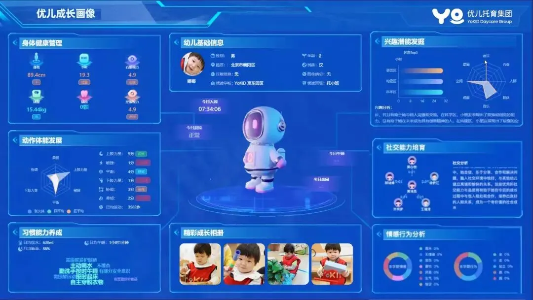 近日,YoKID深圳盐田区人民医院智慧托育园正式全新升级。该园作为由盐田区人民医院高标准筹建、优儿集团全权运营的“公建民营”示范标杆托育园,此次升级并非简单的设备迭代,而是优儿集团深度植入人工智能与物联网技术,对园区进行的一场智慧育儿生态重构。其核心引擎是YoKID-AI系统,不仅实现了安全与健康管理的全面智能化,更在智慧育儿内核上实现了突破性创新——将国际前沿的剑桥幸福育儿大模型深度融入智慧托育场景,推动服务从传统的“基础看护”向科学的“心智培育”跨越,让更多婴幼儿在科技守护下健康、快乐、自信地成长!