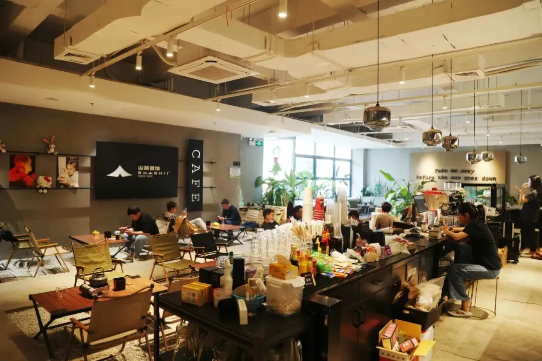 赛场外,毗邻着“山海营地”主题咖啡厅,其开阔的大露台,为赛场与都市之间开辟了一处呼吸之所。咖啡厅内暖光洒落,原木与水泥元素构筑出简洁温暖的基调,吧台传出研磨与萃取的低语,空气中弥漫着咖啡豆的醇香。