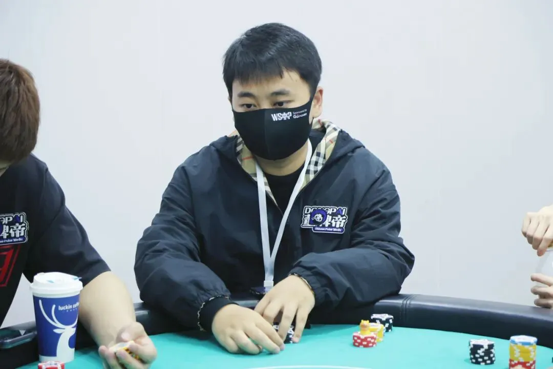 Preflop:HU决赛时刻,王皓晖短记分牌仅剩2W,直接强制全下,乔瑞琦Call;