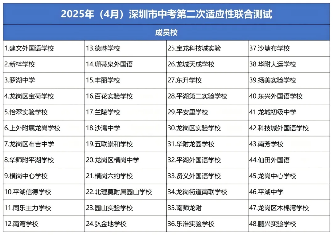 以下为龙岗去年参与联考的学校,今年是否参加以学校官方消息为准。