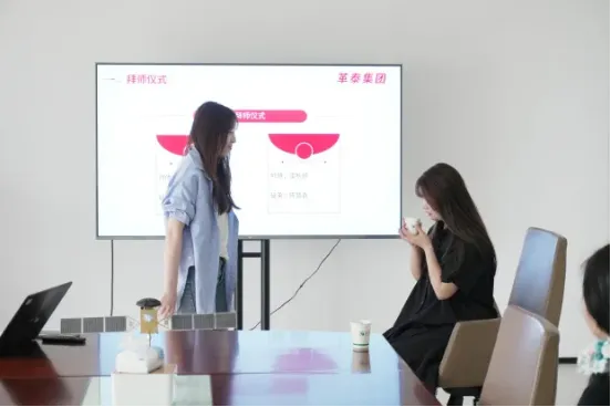 仪式现场,流程简洁而庄重,每一个环节都承载着集团对新员工成长的悉心关怀,更凝聚着师徒之间双向奔赴的美好期许。新员工们怀揣着满心崇敬,依次缓步走到结对师傅面前,躬身行拜师礼,双手稳稳奉上清茶,一举一动皆满含敬意。这一杯清茶,是徒弟许下的郑重诺言—— 虚心求教、潜心钻研、不负教诲;更是师傅接过的沉甸甸责任 —— 传道授业、答疑解惑、助力成长。师徒携手的这一刻,“传技能、帮成长、带作风” 的理念落地生根,为新员工的职场之路筑牢了第一块坚实基石。