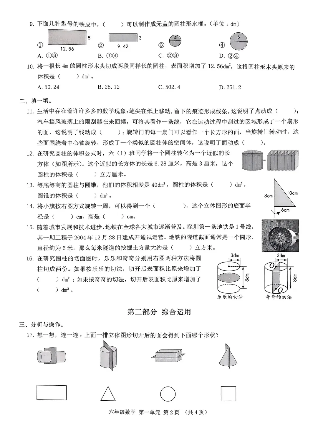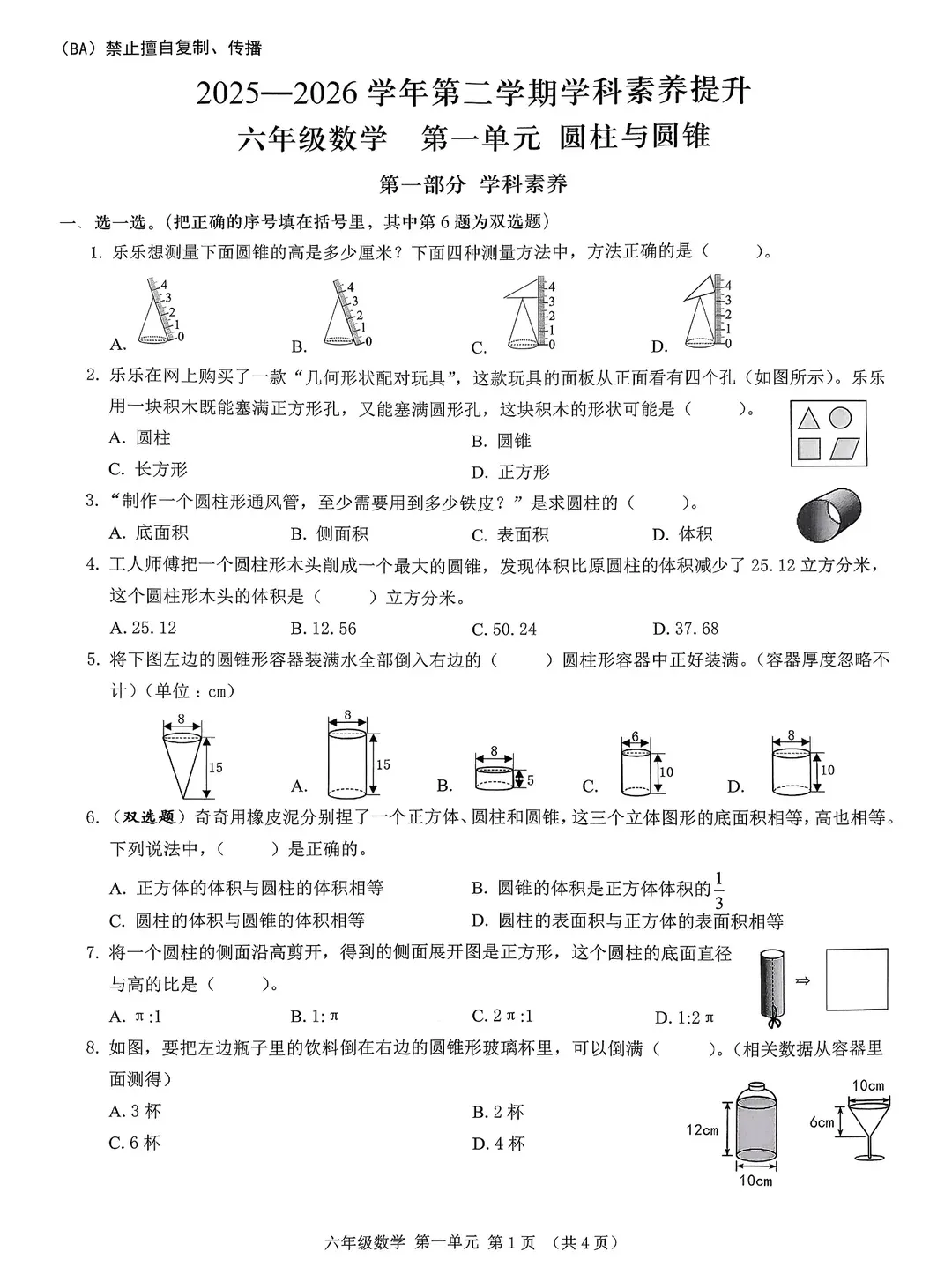 深圳市宝安区2025-2026学年六年级下学期学科素养提升数学试题(第一单元)