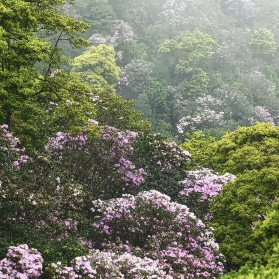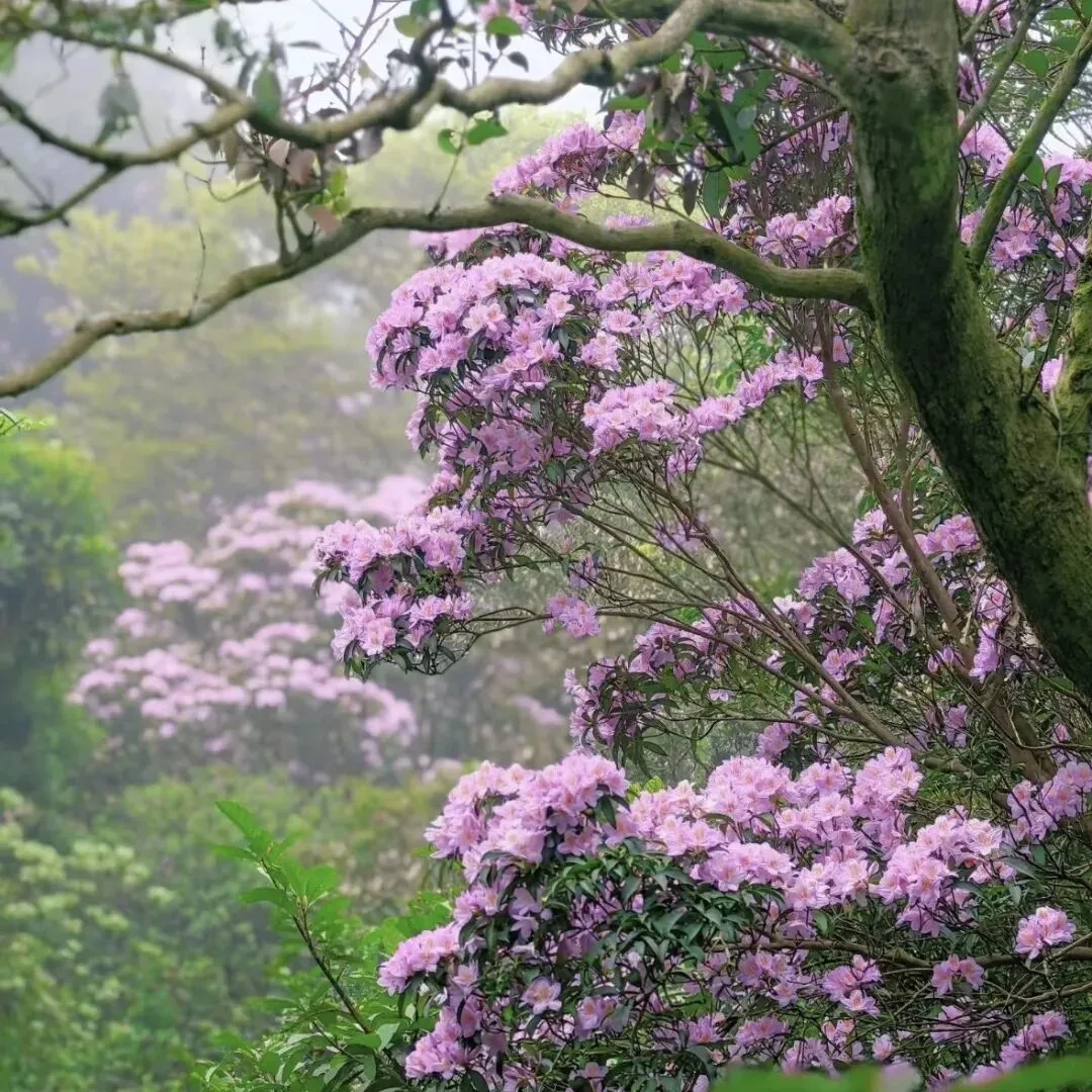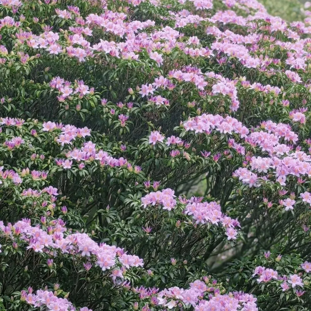 另一个是杜鹃谷,面积比万花屏更大,有20多公顷,杜鹃数量更多。淡紫色、粉红色、粉白色的花朵次第绽放,层层叠叠,美到窒息。