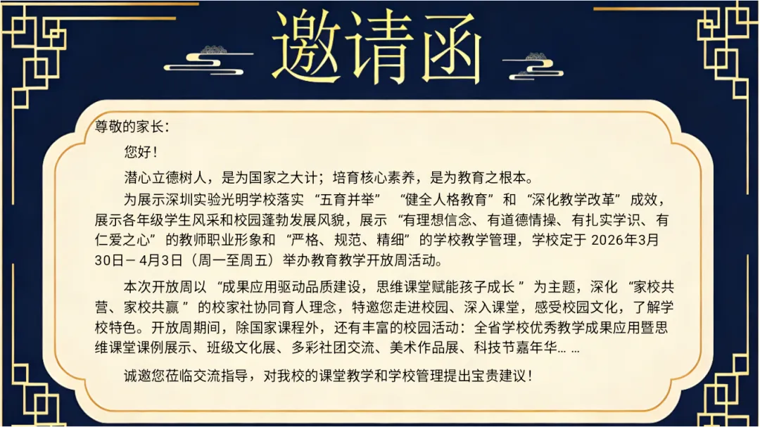 诚邀您走进校园、走进课堂,了解教师、欣赏孩子、参与活动,为实现“人格健全、学业进步、特长明显、和谐发展”的学生培养目标而共同努力。