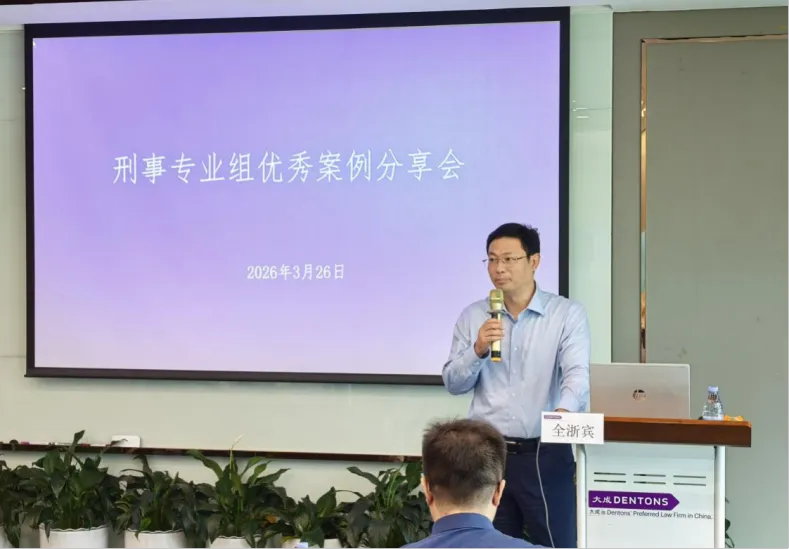 会议伊始,大成深圳合伙人、刑事专业组联合负责人全浙宾律师发表致辞。全律师对专业组工作人员以及律所行政人员为本次活动的精心筹备表示了感谢,对此次分享会的三个典型案例进行了初步的介绍,并对各位到场嘉宾表示了热烈的欢迎。
